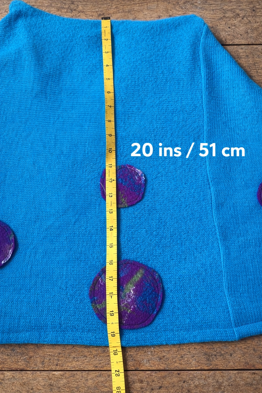 Turquoise Merino Wool Poncho-Hand Felted Detail-One of a kind